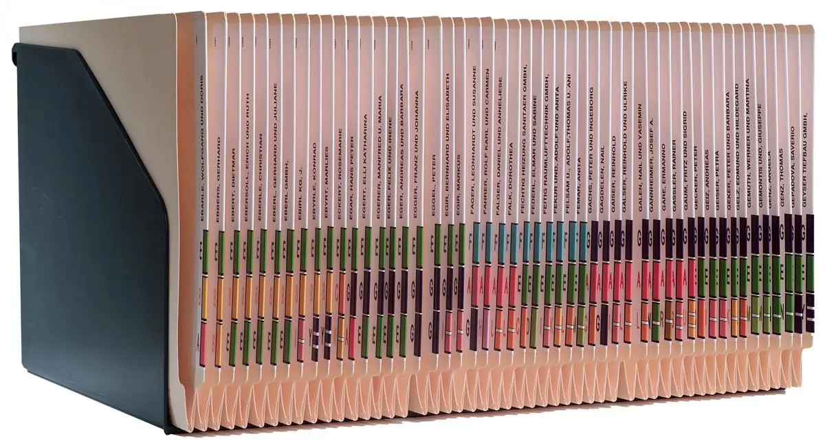 - Zeitersparnis durch sichere Loseblattablage - Beste Übersicht durch stehende Registratur (Kassettenregistratur) Farbe: chamoisMaterial: Zellstoffkarton für Papiermengen bis zu 400 Blatt durch automatische Bodenfalte Vorderkanten der Mappe zur Verstärkung doppelt umleimt, alle Ecken gerundet, geprägte Markierungen auf dem Tabrand zur Positionierung der Etiketten.